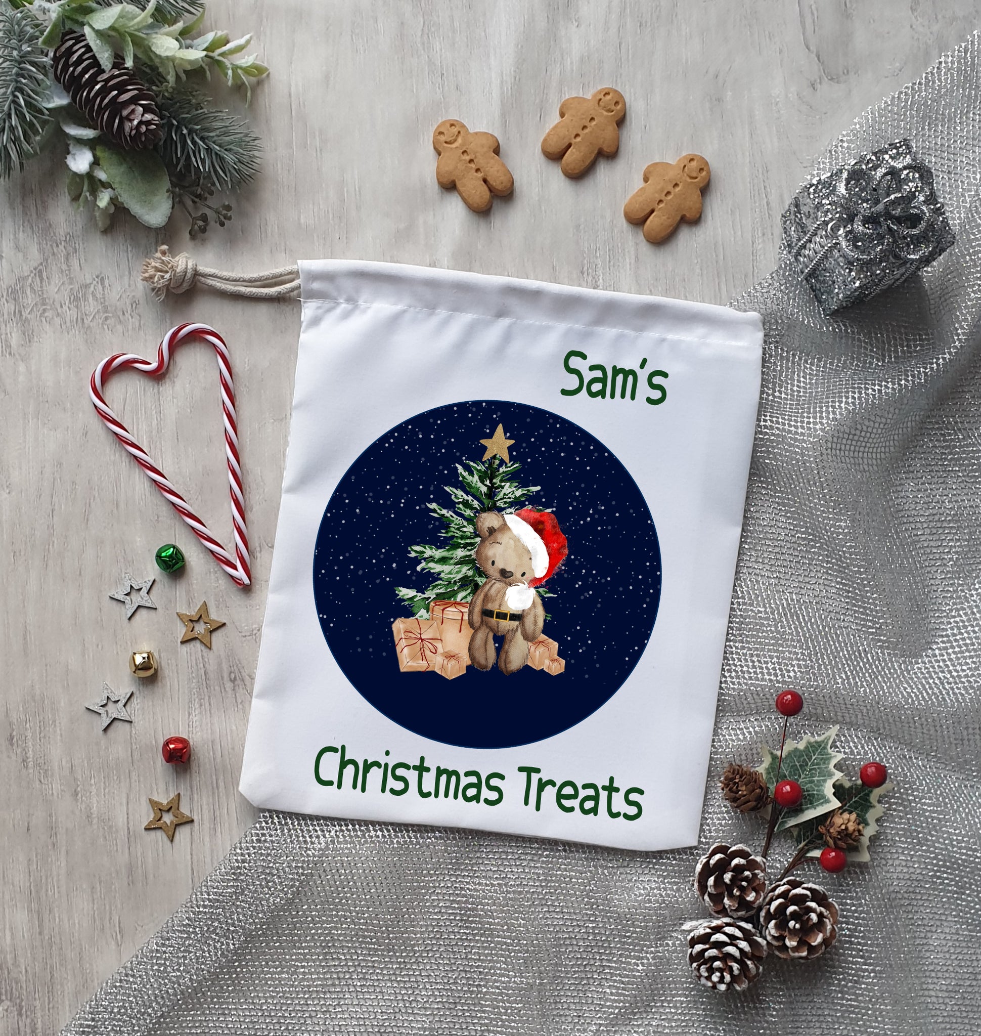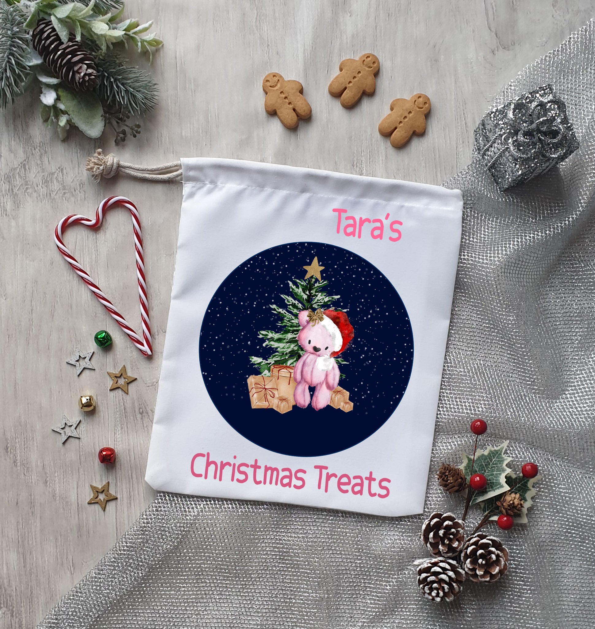 Very cute 24cm x 30cm drawstring bag to contain treats, sweets, makeup, anything you like! Just put in the personalisation box the name plus what you would like written on the bag, ensuring all grammar and spellings are correct. Available in 3 colours of bear!