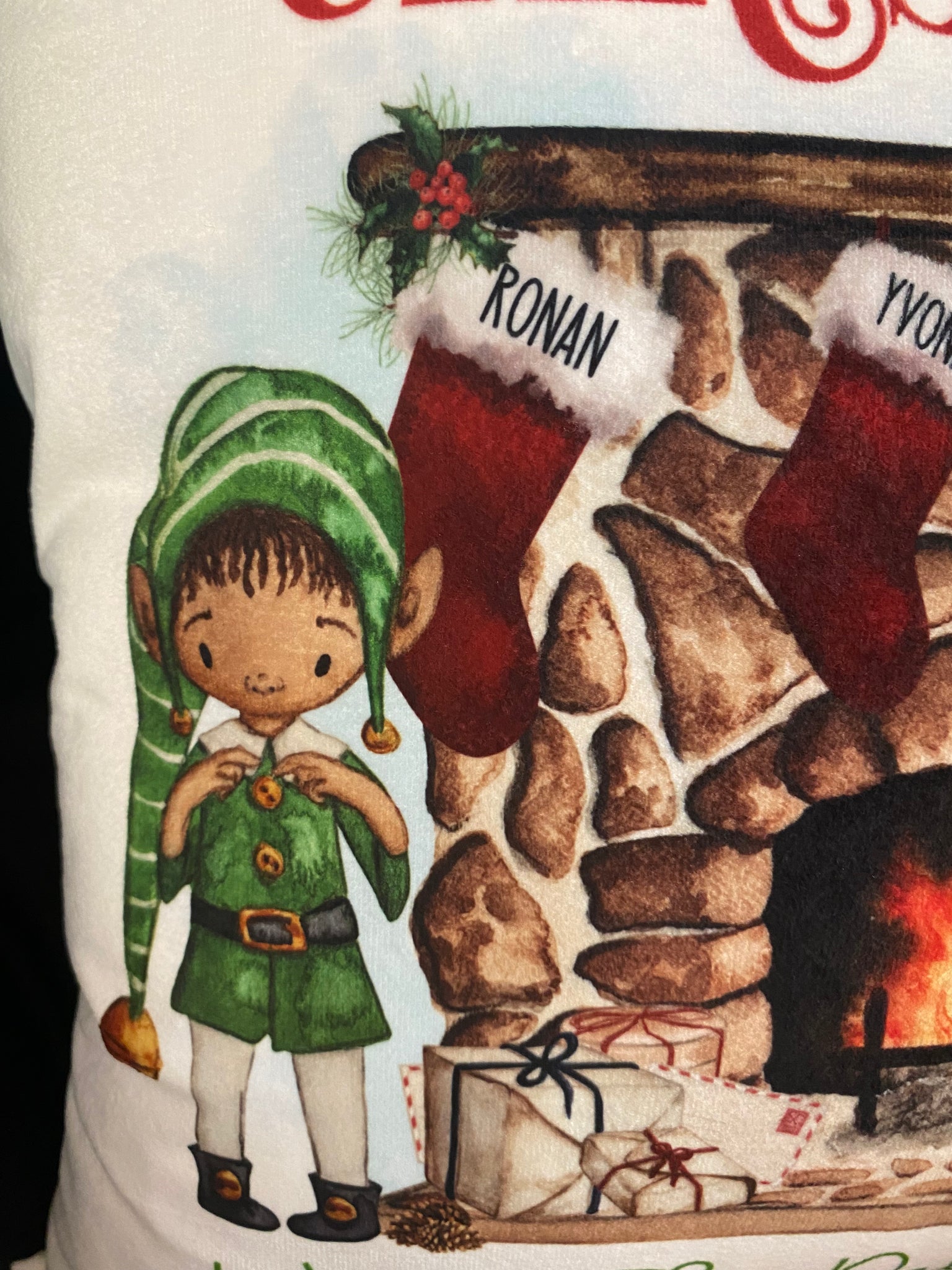 Gorgeous Christmas gift! Fireplace design with 2 little elves guarding it! Names can be added to each stocking up to a maximum of 8 and please note that long character names will have a much reduced font size. Please ensure accuracy of spelling for names and for any additional wording that you would like.