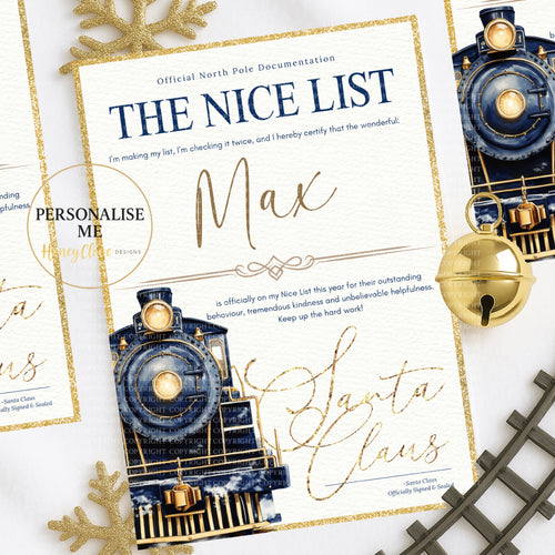 Believe Train Design Nice List Letter - Christmas Blue or Pink