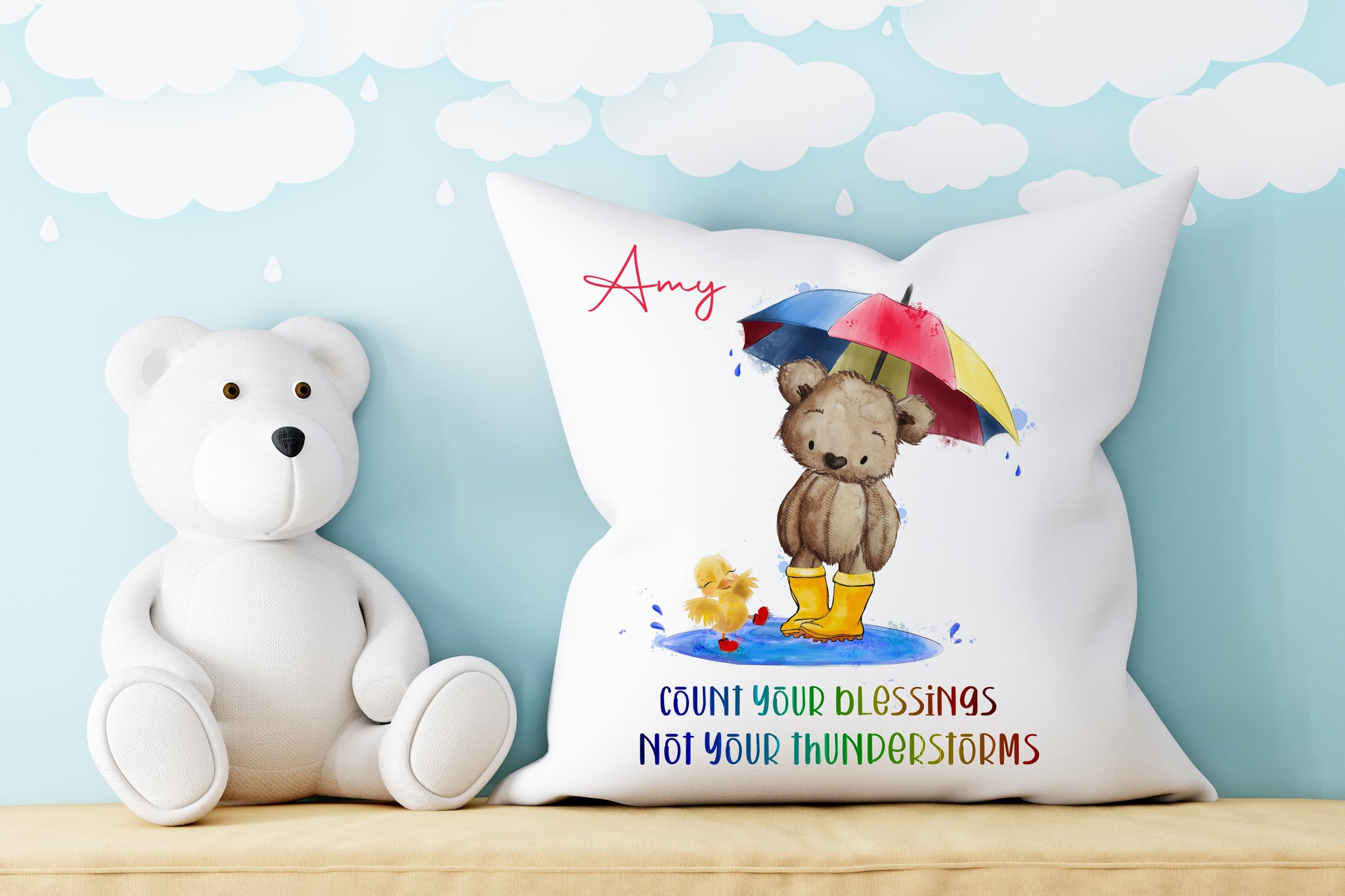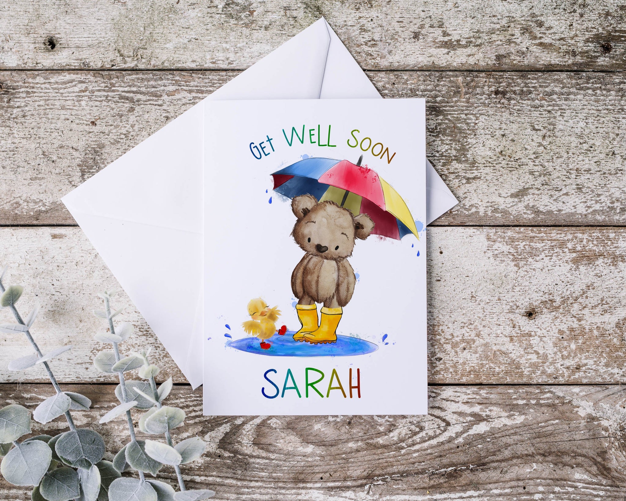 This has to be one of my favourite designs ever! Super cute little brown bear with a colourful umbrella and little duckie friend! You can have any wording of your choice but a couple of samples are shown. Please specify exactly what you would like in the personalisation box. Range of matching items available!