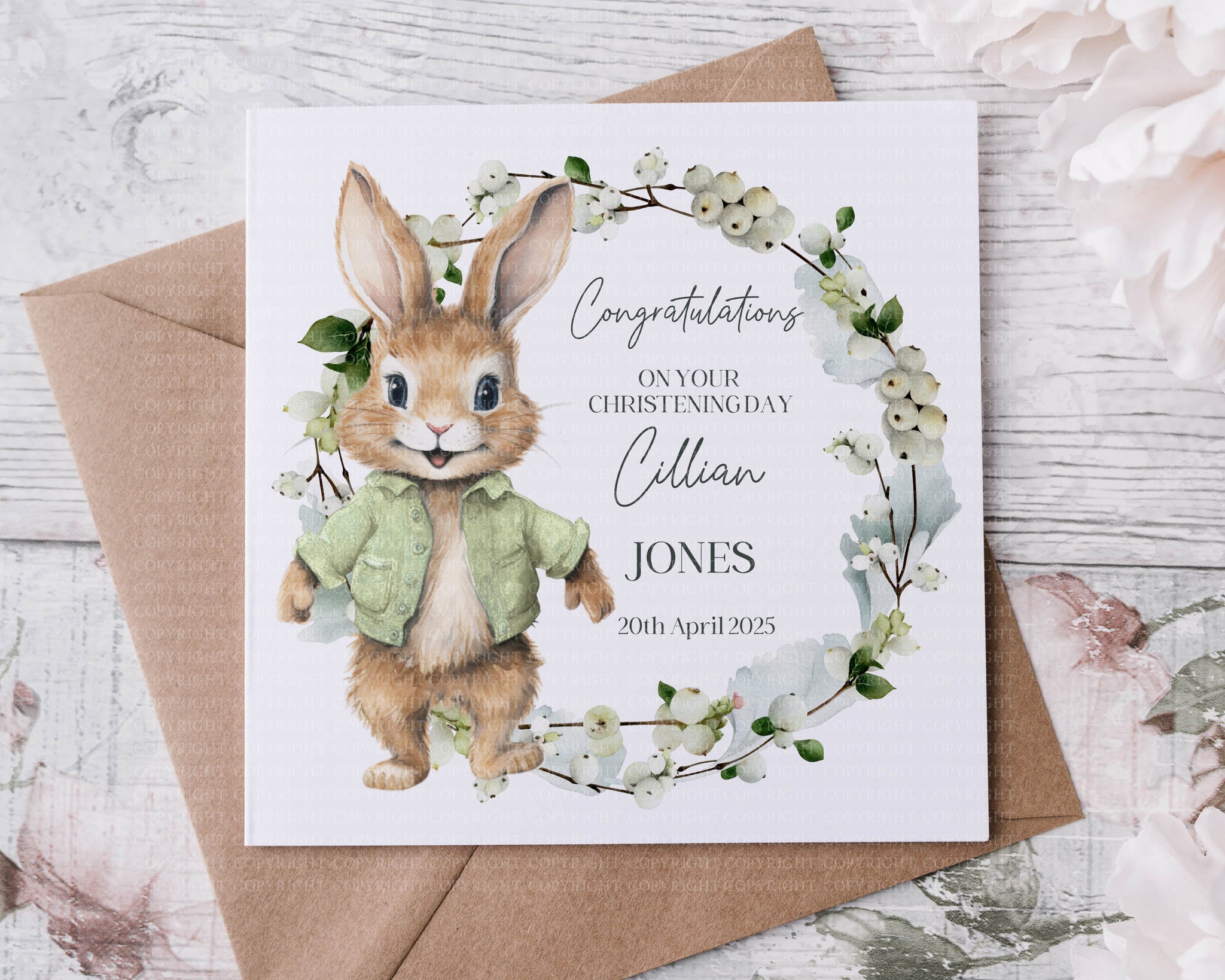 • Load image into Gallery viewer, Flopsy bunny Christening Card - Boy