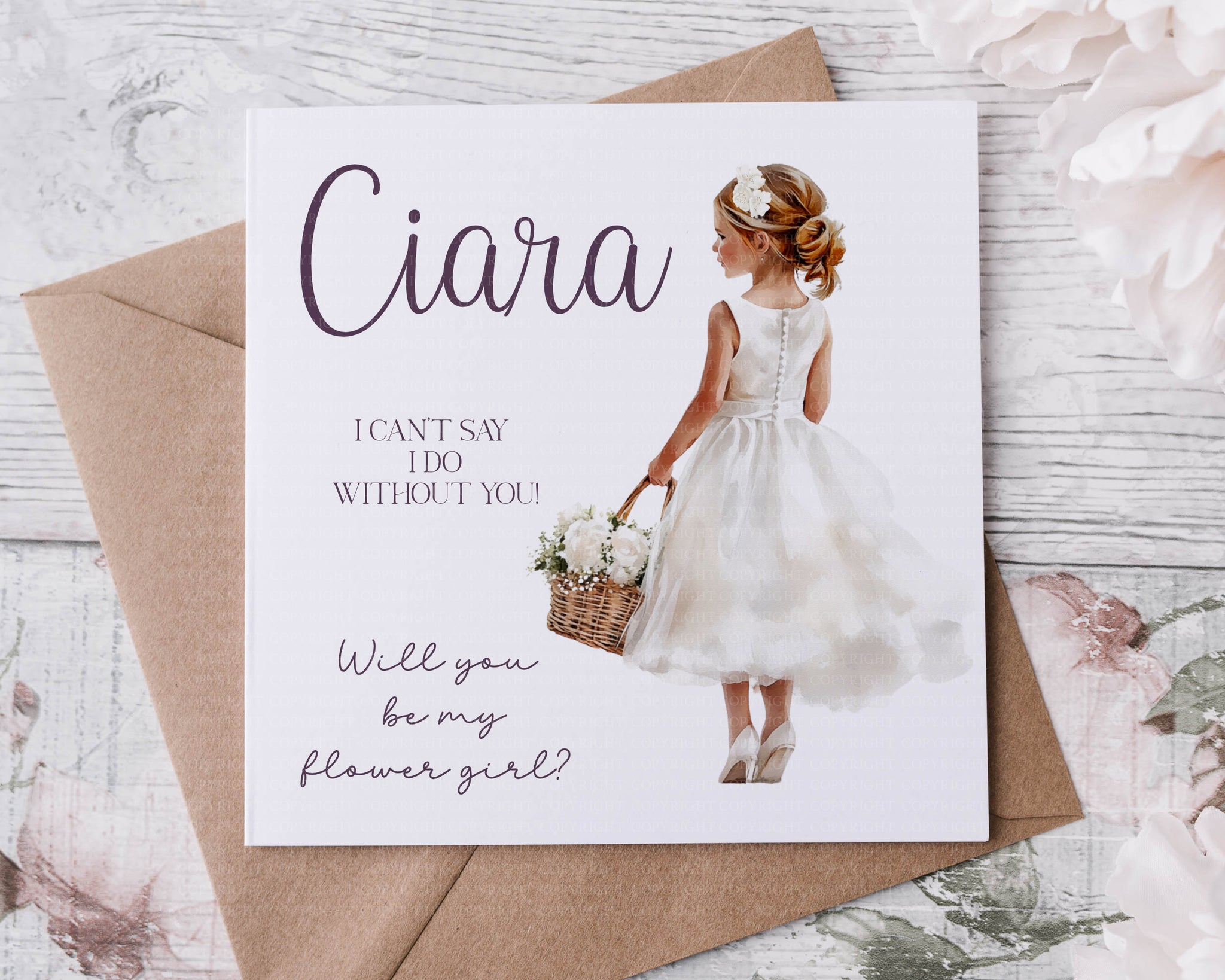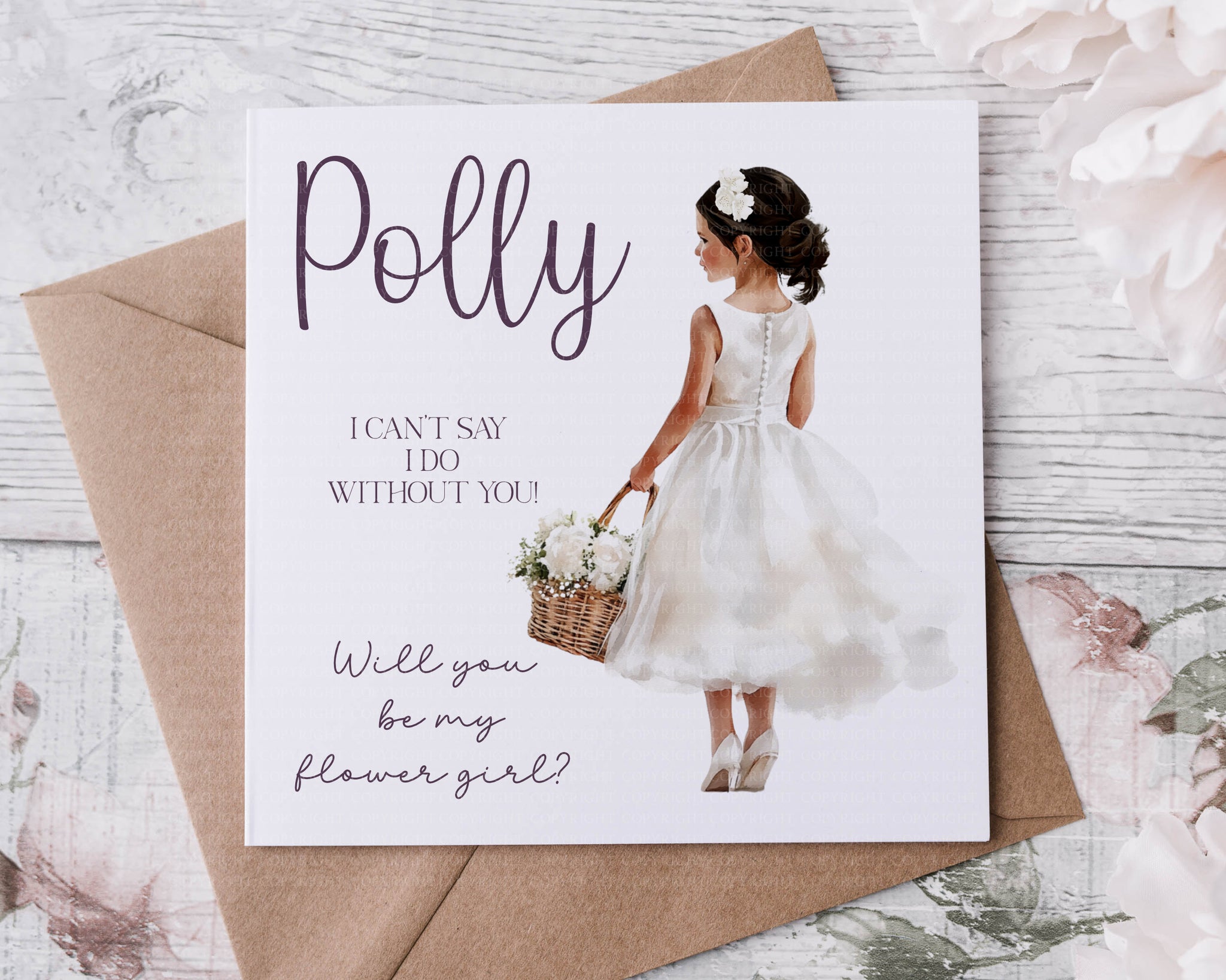 Personalised cards show people that you really care as they are made to order and not mass produced. This beautiful flower girl design makes for a very special card that will be kept for years to come.