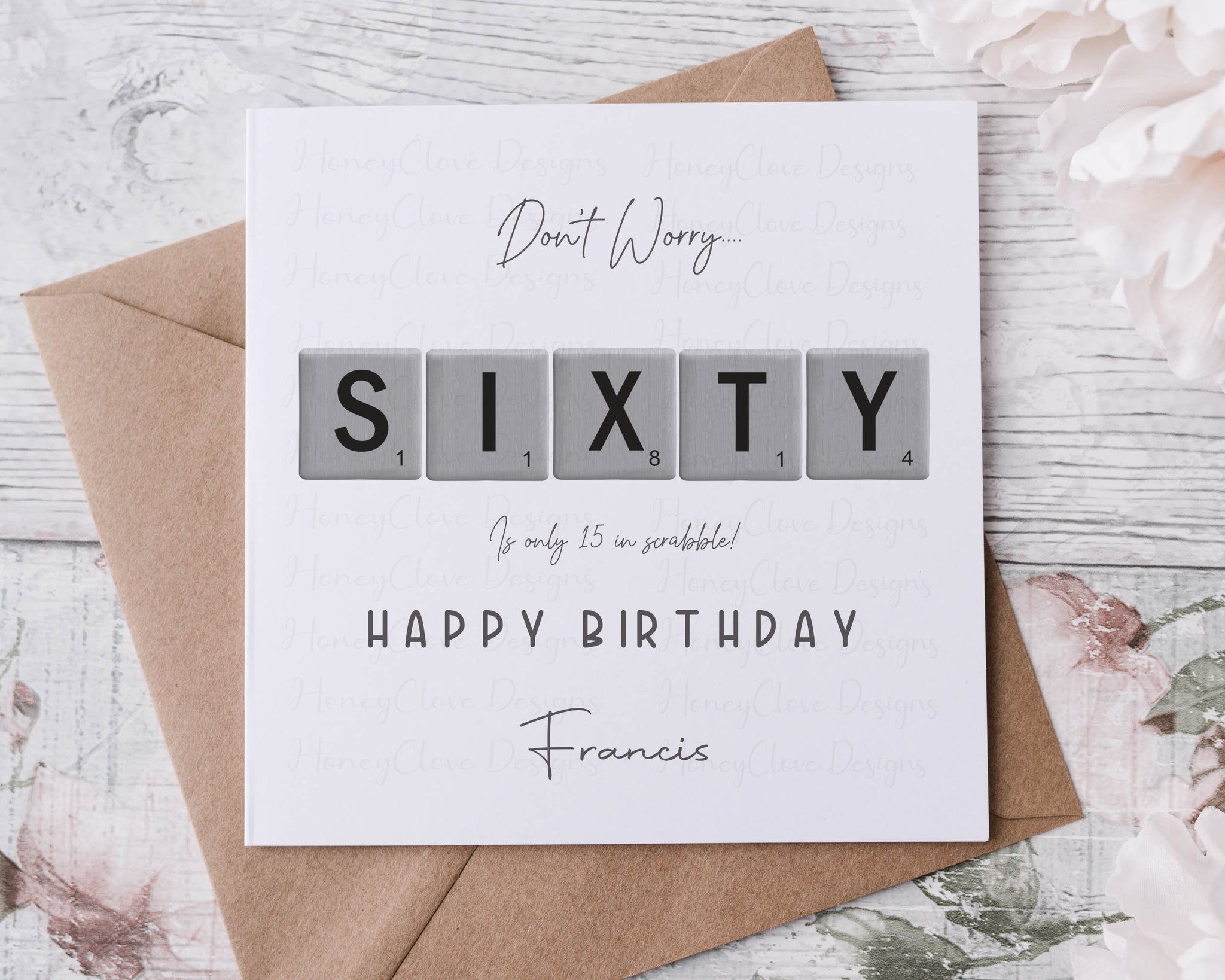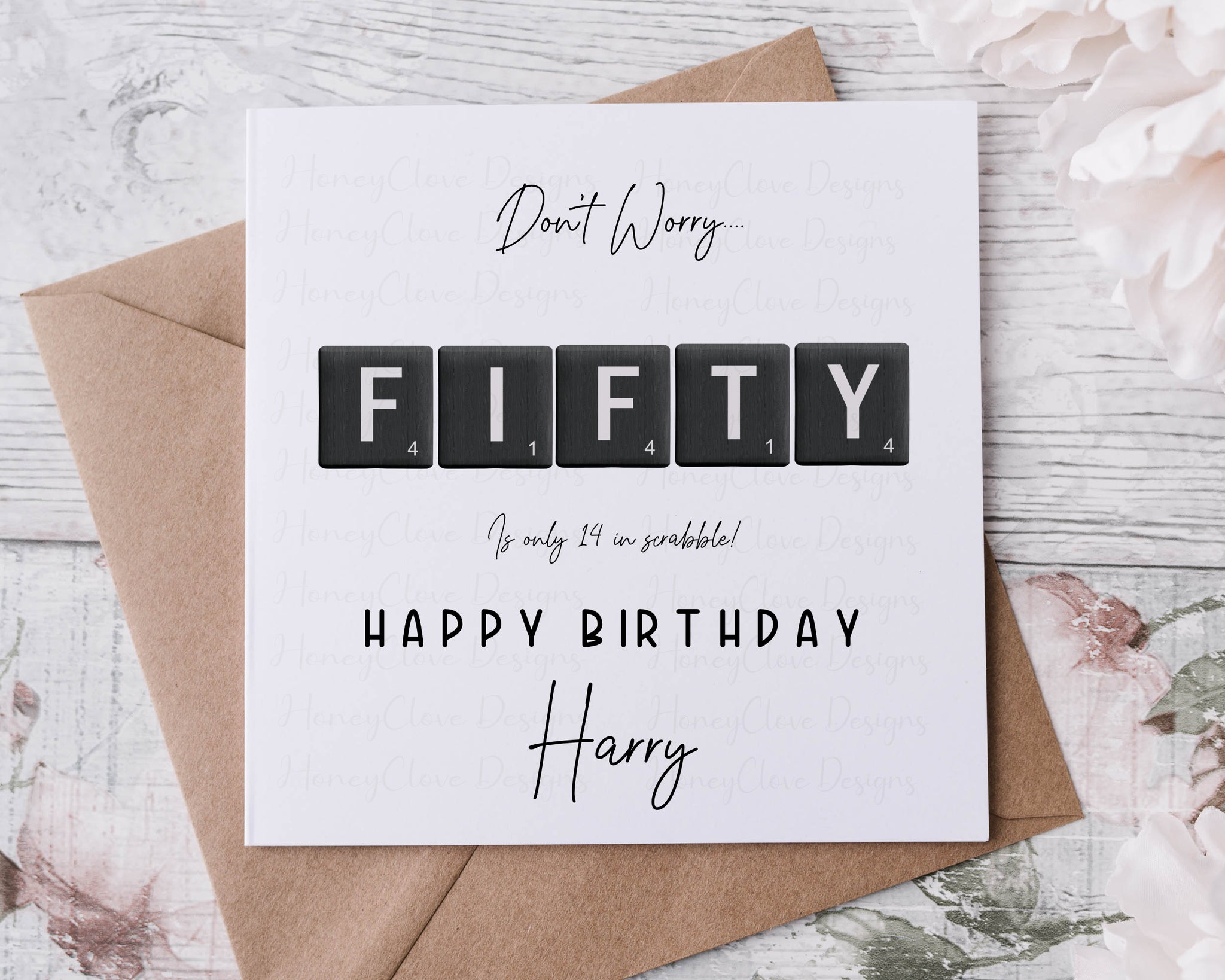 Personalised birthday card using the infamous letter tiles! Ideal for any significant birthday and available in a variety of colours.