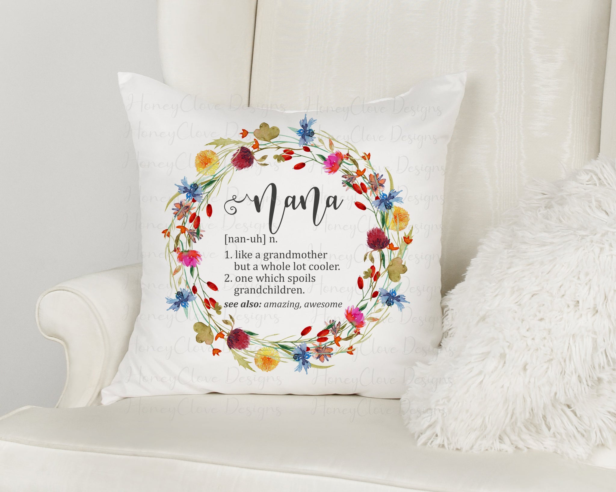 A brand new selection from HoneyClove! 6"x6"linen style card complete with white envelope. Beautiful and vibrant floral wreath with cute nana definition inside.