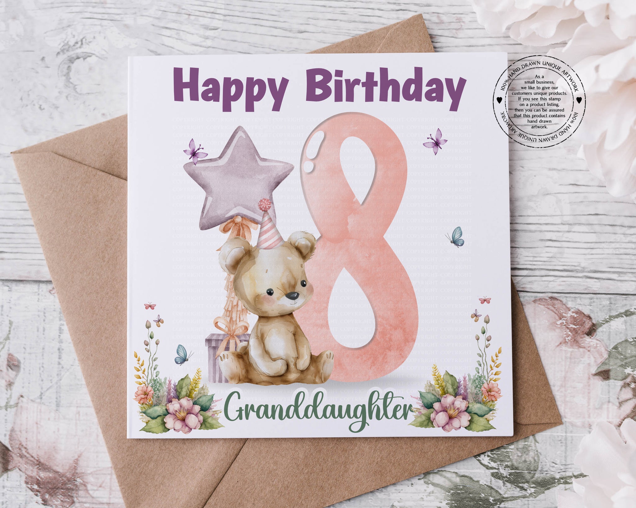 Celebrate birthdays in style with this delightful personalised card, printed on premium hammered cardstock for a textured, elegant finish. Featuring a sweet teddy bear, a star balloon, and a large age number, this 6-inch square card is perfect for anyone—kids, teens, or grown-ups!