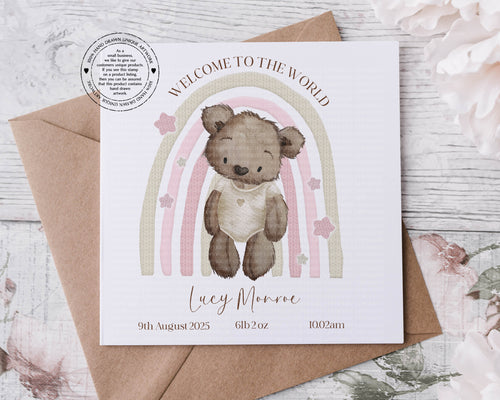 New Baby Card - Baby Bear Rainbow