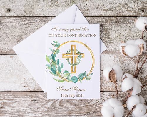 Gold Cross & Wreath Communion/Confirmation Greeting Card